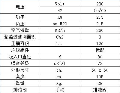 - 塵桶容量120 lt.,排水很方便,可通過底部的排水閥直接排出。